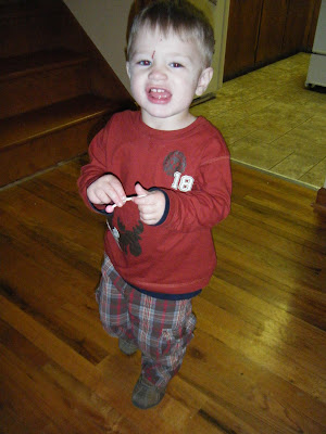So I have a problem. For the last 3 weeks or so, Gideon won't take naps. He's learned how to climb out of his crib (yes, the mattress is lowered as far as it can go. It has been for months.) So nap time has become a ritual of me lying him down and then listening to him move his furniture around for about 15 minutes until I go in and lay him down again. We do this for an hour to an hour and a half a day. (And yes, I'm serious about the furniture moving. I need to get his room carpeted so he'll quit scratching the hard wood floors.) Once or twice he's given up and fallen asleep. Even more rarely he'll fall asleep playing or watching cartoons (as was the case yesterday.) Please don't suggest to me putting him in the car, because he's got some sort of built in radar that feels when the car begins to slow, so he's usually awake as we pull back into the garage and generally won't go back to sleep.